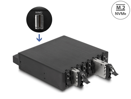 This solid metal mobile rack by Delock can be installed into a 5.25 bay of a PC, IPC or server enclosure and enables the operation of up to 8 M.2 NVMe SSD. To ensure the maximum speed at each port, each slot has its own Slim SAS SFF-8654 connector.