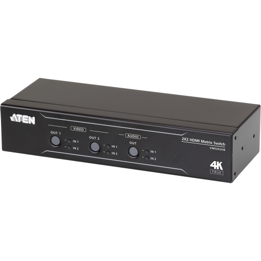 Aten 2 x 2 True 4K HDMI Matrix Switch with Audio De-Embedder and IR / RS-232 Control