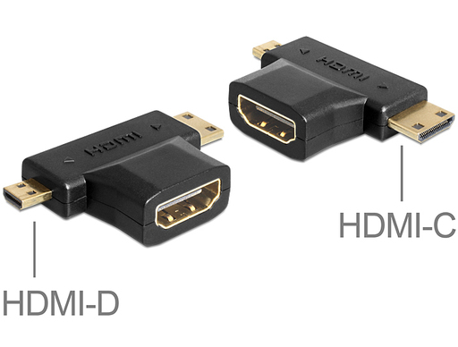 This HDMI adapter by Delock enables you to connect a device with mini HDMI-C or micro HDMI-D interface, by using an optional HDMI cable.