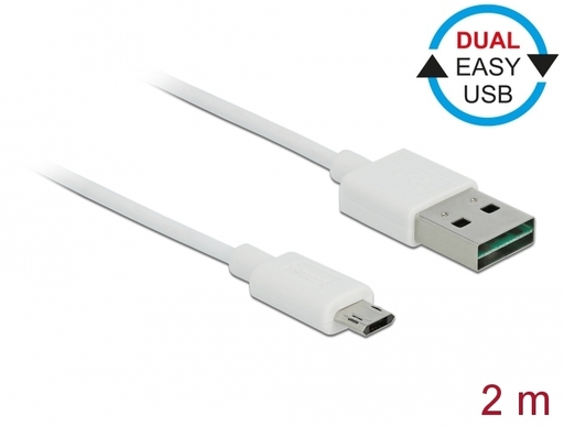 This cable by Delock with EASY-USB Type-A male and EASY-USB Type Micro-B male can be plugged into the appropriated USB female port in both directions. Thus the male connector can be used both-sided which makes the plug in easier.