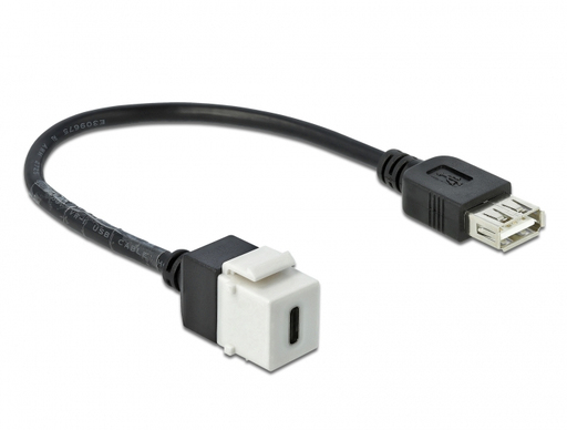 This module by Delock can be used to extend a USB connection. With its standardised dimensions the module can be used for easy snap-in mounting in e. g. a Keystone patch panel, face plate or surface-mount box.
