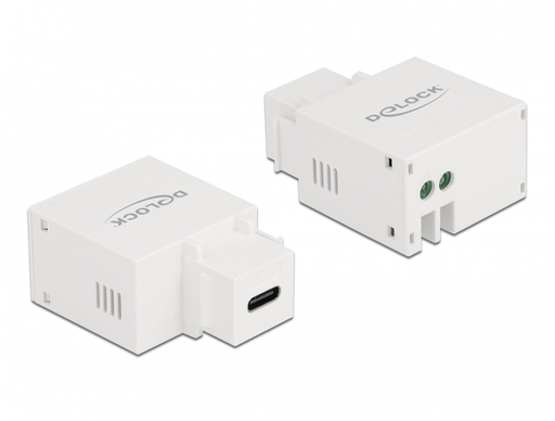 This module by Delock provides a USB Type-C charging port. With its standardised dimensions it can be used for easy snap-in mounting in e.g. a Keystone patch panel, face plate or surface-mount box.