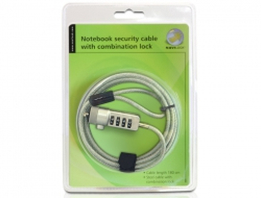This laptop security lock by Navilock enables to lock different devices e.g. laptop, projector, monitor etc. at any place. The steel cable with its 1.8 m and 4 digit combination lock can be tied easily around objects like chairs, table-leg or anything similar and thus the device will be saved against theft.