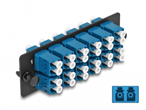 This panel by Delock is equipped with twelve LC Duplex couplers and is suitable for installation in 19 fiber optic HD (High Density) patch panel by Delock (66924). With the LC Duplex couplers, fiber optic male connectors can be easily connected to each other.