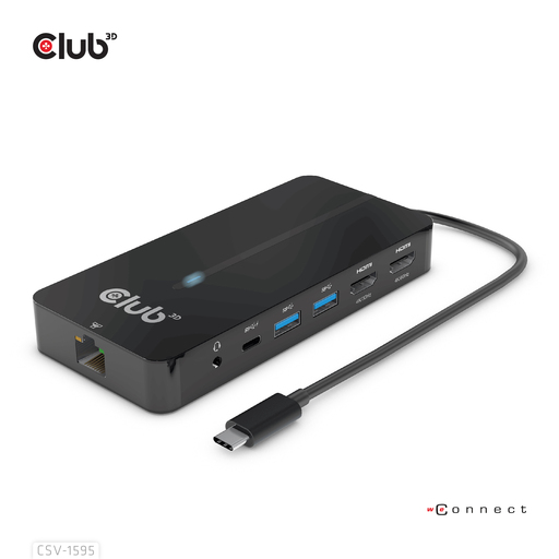 CLUB3D CSV-1595. Interfaccia host: USB 3.2 Gen 1 (3.1 Gen 1) Type-C, Interfacce hub: 3.5mm, HDMI, RJ-45, USB 3.2 Gen 1 (3.1 Gen 1) Type-A, USB 3.2 Gen 1 (3.1 Gen 1) Type-C. Velocit di trasferimento dati: 5000 Mbit/s, Tempo massimo di refresh: 60 Hz, Modalit video supportate: 1080p, 2160p. Tipo di interfaccia Ethernet: Fast Ethernet, Gigabit Ethernet, Velocit trasferimento Ethernet LAN: 10,100,1000 Mbit/s. Consumo energetico (max): 7,5 W, Voltaggio di uscita: 5 V, Corrente d'uscita: 1,5 A. Larghezza: 140 mm, Profondit: 65 mm, Altezza: 19 mm Tipo: CAVI USB