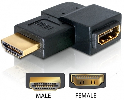 This HDMI adapter by Delock enables to lead the female port of an HDMI devices, e.g. flat screen, etc. 90- leftwards. Thus you can connect a HDMI cable without any problem in case the existing HDMI female port is difficult to access. -