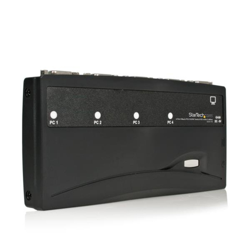 Il kit switch KVM PS/2 4 porte nero con cavi SV411K permette di controllare quattro computer tramite una tastiera, un mouse e un monitor VGA soltanto e offre la possibilità di passare tra i computer connessi sia con scelte rapide che con un pulsante posto nel pannello superiore. Progettato per integrarsi in modo continuativo in qualsiasi ambiente, lo switch KVM si presenta con un design dalle piccole dimensioni (grande circa come un mazzo di carte) ed è alimentato tramite i computer connessi, in modo da non richiedere alimentazione esterna. Offrendo una gestione affidabile e conveniente di più computer da una singola postazione con periferiche, lo switch KVM supporta risoluzioni video fino a 2048x1536 e comprende cavi 3 in 1 (PS/2 e video) per una soluzione KVM completa e pronta all'uso. Con garanzia StarTech.com di 2 anni e supporto tecnico a vita gratuito.