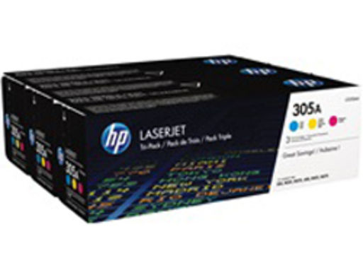 Le cartucce toner HP 305A LaserJet consentono di stampare di più e risparmiare senza sacrificare l'affidabile, stampa sicura del materiale originale HP. Le confezioni da tre cartucce, progettate per elevati volumi e stampa di qualità fotografica per aziende, sono una soluzione conveniente e di valore.