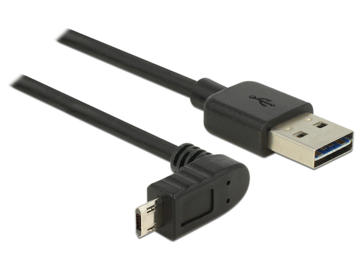 This cable by Delock with EASY-USB Type-A male and EASY-USB Type Micro-B male can be plugged into the appropriated USB female port in both directions. Thus the male connector can be used both-sided which makes the plug in easier.