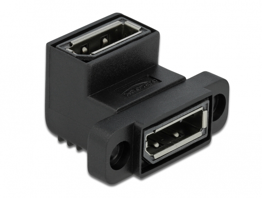Questo adattatore System 45 Delock è progettato per collegare due cavi DisplayPort. L'adattatore può essere utilizzato per prolungare i cavi o come modificatore di genere. I due fori laterali consentono di avvitare l'adattatore, ad esempio, su dispositivi o mobili.