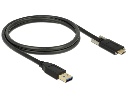 This USB cable by Delock allows the connection between devices with a USB Type-C™ connector and a PC or laptop with a free USB port. The screws of the USB Type-C™ connector secure the connection and prevent accidental unplugging of the cable.