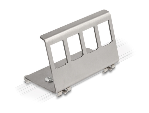 This Keystone holder by Delock can be mounted to a 35 mm DIN rail. With its standardized dimensions, it is suitable for easy snap-in mounting of 4 Keystone modules.