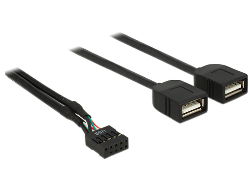 The Delock USB cable enables you to connect two USB devices with a USB-A interface to an internal pin header of the mainboard.