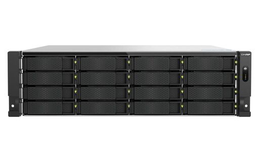 QNAP NAS - 16-bay, 3U, 3.5"" SATA HDD NAS, AMD Ryzen 7000 series 8C16T (boost up to 5.3 GHz), 32GB DDR5 non-ECC RAM (max. 128GB total), 2x M.2 2280 PCIe Gen5 x2 slots for SSD cache, 2x 10GBASE-T + 2x 2.5 GbE RJ45, 3 x PCIe Gen 4 expansion slots, 2 x 550W redundant pwoer supply, without rail kit. Support rail kit RAIL-B02