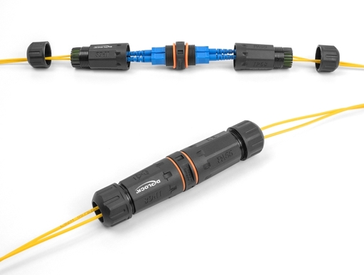 This cable connector by Delock connects two optical fiber cables together and is ideal for outdoor use.