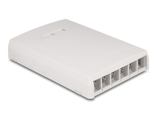 This empty box by Delock is suitable for mounting 6 Keystone modules and can be used as a junction box on the wall or in enclosures. It offers a versatile solution for the flexible installation of Keystone modules in networks, data centres, home and commercial environments.