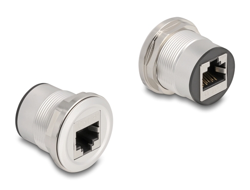 This RJ45 coupler by Delock can be used in a switch cabinet or distribution box to connect or extend two RJ45 plugs together.