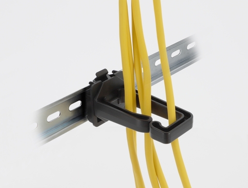 This cable bracket by Delock can be attached to a 35 mm wide DIN rail to ensure organised and clear cable routing.