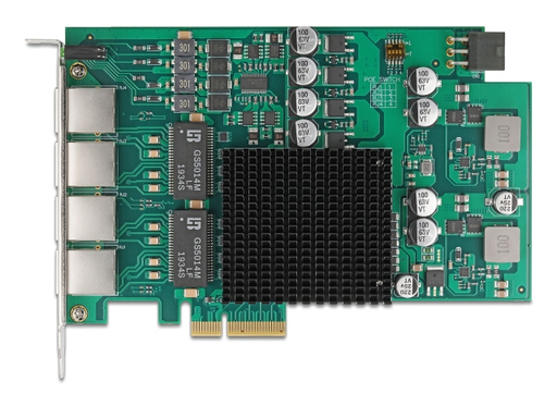 The PCI Express card by Delock offers four network ports with a data transfer rate up to 1000 Mbps.