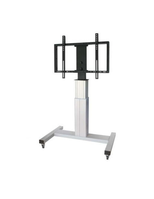 Versione Maxi del carrello motorizzato Electric Up-Down: oltre ai 50 cm di sollevamento elettrico, la colonna può essere sollevata manualmente di ulteriori 24 cm consentendo di portare il monitor ad un’altezza di 165 cm da terra senza alcuno sforzo.\n\nIdeale per gli ambienti business e la formazione e per tutti quei contesti in cui monitor di grosse dimensioni devono esere sollevati ripetutamente e senza sforzo\n\nDotato di sistema di sicurezza: il movimento di ascesa si blocca di fronte ad un ostacolo, per poi rientrare nella posizione iniziale.\n\nCaratteristiche:\n– Portata max 150 kg\n– Max monitor 100”\n– Corsa 500mm elettrica e 240 mm manuale, altezza massima 1640mm\n– Telecomando con cavo 1.5 mt incluso\n– CE certificate include made by external engineering company\n– Completamente assemblato ( solo ruote da assemblare)\n\nColore silver – colore nero su richiesta