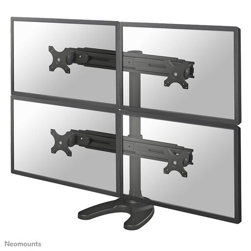 Questo braccio porta monitor NewStar, modello FPMA-D700DD4 consente di collegare quattro schermi LCD/LED/TFT su di una scrivania con la modalità di fissaggio su piano attraverso vite centrale o stand.\n\nUtilizzate un braccio porta monitor per sfruttare pienamente le capacità del vostro schermo. Il braccio è facile da regolare in altezza. È inoltre possibile inclinare lo schermo in senso verticale, orizzontale e farlo ruotare; questo crea la posizione ergonomica di lavoro ideale riducendo il rischio di mal di schiena e al collo. I cavi possono essere collocati sul lato orizzontale del braccio e attraverso la predisposizione di passaggio all’interno della colonna.\n\nIl supporto FPMA-D700DD4 ha un punto di articolazione ed è adatto a schermi fino a 30" (76 cm) con una capacità massima di trasporto di 32 kg (8 Kg per ogni schermo). Questo prodotto è adatto per schermi con fori VESA modello 75x75 o 100x100 mm. Per una diversa (più grande) foratura, si può combinare con una delle nostre piastre di adattamento VESA.