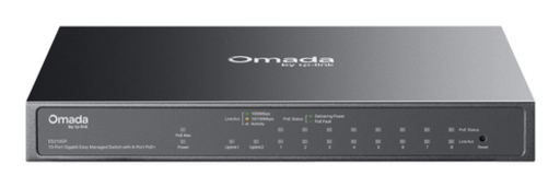 TP-Link Omada ES210GP V1 - Switch - gestito - 8 x 10/100/1000 (PoE+) + 1 x 10/100/1000 + 1 x combinazione Gigabit SFP/RJ-45 (uplink) - desktop, montaggio a parete - PoE+ (123 W)