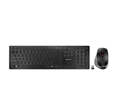 CHERRY DW 9500 SLIM - Set mouse e tastiera - senza fili - 2.4 GHz, Bluetooth 4.0 - Statunitense con il simbolo dell'euro - interruttore: CHERRY SX - grigio, nero - packaging esente da plastica