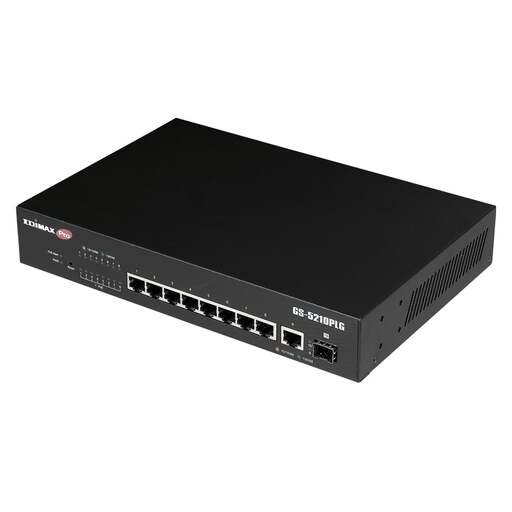 Il GS-5210PLG è progettato per reti aziendali di piccole e medie dimensioni che richiedono una gestione di rete semplice e intelligente. Questo switch web intelligente soddisfa le crescenti esigenze di rete offrendo funzionalità essenziali avanzate come VLAN, Link Aggregation, Broadcast Storm Control, Loop Detection/Prevention, IGMP Snooping v1/v2/v3, QoS, Port Mirroring e altro ancora, ottimizzando ulteriormente le prestazioni delle reti aziendali. Sperimenta operazioni rapide e semplici con pochi semplici clic grazie all intuitiva utility di gestione basata sul web: la tua rete è pronta all uso. Caratteristiche - 8 Porte Gigabit Ethernet PoE+, 1 porta RJ45 Gigabit uplink e 1 porte SFP Gigabit uplink