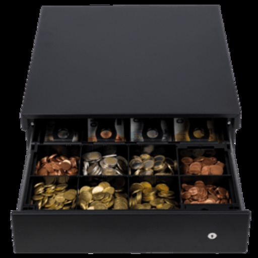 Sportello cassa, Apertura frontale, Impiego: 4 scomparti per banconote, 8 scomparti per monete, removable, Attacco alla stampante di cassa, RJ12, 24 V, Dimensioni, B 391mm, H 97mm, T 445mm, RJ12, 3 m, Colore: antracite