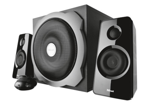 - 2.1 speaker set including wooden subwoofer with a total RMS power output of 60 Watt (120 Watt peak power) - High quality sound with deep bass - Convenient wired volume control with headphones and iPod/mp3 connections - With volume and bass control at the side - Smart power management: goes to stand-by when not in use