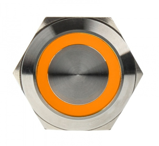 Pulsante a Pressione DimasTech, 22mm ID, Colore Corona Led/Illuminazione Arancione, Alimentazione Corona Led 12V, AC/DC, Vita Utile 40.000 Ore, Azione Momentanea