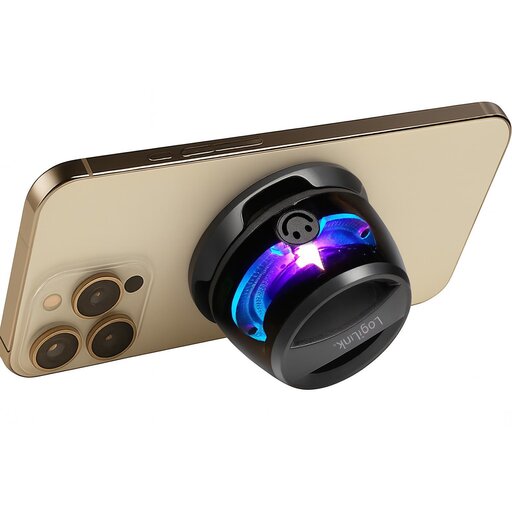 Speaker compatto Wireless Bluetooth che si fissa facilmente come supporto per telefono a iPhone con MagSafe, iPhone con custodia MagSafe o qualsiasi altro telefono utilizzando l anello metallico incluso