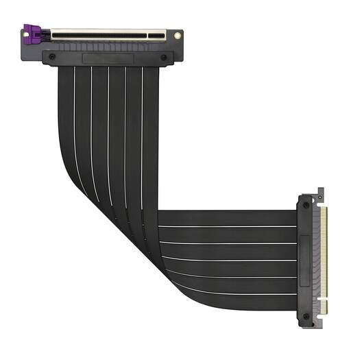Flex your Graphics Muscle\nThe Cooler Master Riser Cable PCIe 3.0 x16 Ver. 2 - 300mm comes revised for maximum flexibility and durability. High quality plastics grant increased cable flexibility and strength for the tightest PCI card installations, while the heavy-duty shielding prevents electromagnetic interference from degrading signal quality. A stainless steel PCI slot adds extra rigidity to the riser to support even the largest and heaviest graphics cards. The IPC4101D compliant PCB provides the best in class performance under high thermal loads and cable flex than any of the non-compliant competitor riser cables in the market. Ultra Durable PCB\nThe IPC4101D compliant PCB provides the best in class performance under high thermal loads, cable flex, and moisture resistance than any of the non-compliant competitor riser cables in the market. Heavy duty shielding\nEMI shielded 28/30 AWG copper wires ensure minimal signal delay and electromagnetic interference-free operation. Gold pin connections\nGold PCI pins allow maximum electrical conductivity with a rated 110g of insertion force per contact pair for high durability. Protective ABS casing\nUV resistant ABS casing protects cable connection points from rough handling. Freely express yourself: Download the 3d printable files (.stl) and create your own customized design. Stainless steel-reinforced PCI slot\nNickel-plated stainless steel PCI slot adds rigidity for superior card retention for even the heaviest PCI card installations. Ultra-flexible cable sleeves\nTPE cable sleeves allow for maximum flexibility and durability for the tightest cable routing jobs.