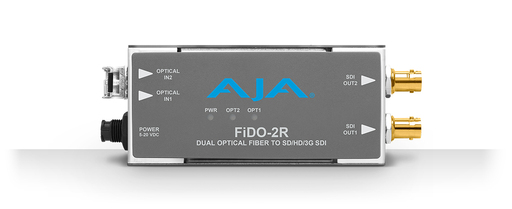 FiDO-2R-MM offers unmatched flexibility and cost efficiency for 3G-SDI Fiber conversion, allowing for cable runs up to 700 m (2296 ft) for OM4 and 300 m (984 ft) for OM3 for Multi-Mode* fiber optic cables - useful for eliminating ground loop problems. FiDO converters use a compact, low-profile enclosure that works well in tight spaces around and behind equipment racks, trucks and on camera. Universal Power Supply\nAll AJA Mini-Converters ship with a universal power supply that includes international plug connections for use around the world. Compact and Portable\nAJA Mini-Converters are small enough to fit behind a monitor, in the back of a rack or directly on a camera rig. A locking power connector can't accidentally pull loose and an optional P-TAP power cable allows for battery power in remote locations.