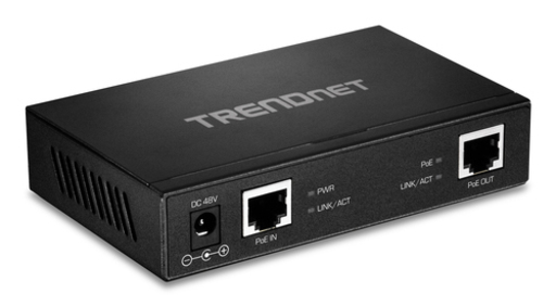 TRENDnet's Gigabit PoE+ Extender/Amplifier, model TPE-E110, takes a single PoE+ connection and extends it an additional 100m (328 ft.) for remote PoE/PoE+ device installation. The TPE-E110 auto-detects a PoE (15.4W) or PoE+ (30W) connection and extends it for a total distance of up to 200m (656 ft.) from the power sourcing equipment. Daisy chain up to 5 units for a total PoE+ network extension of 600m (1,968 ft.) *. The extended range and convenient wall mounting design allows for greater installation flexibility.