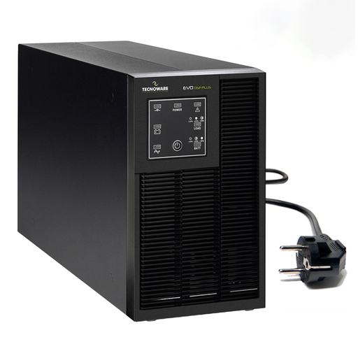 UPS EVO DSP PLUS 800 - Tecnologia On Line (VFI) DSP, Efficienza 94%, Ingresso/uscita 230/230Vac 50/60Hz, dimensioni 10x14,5x30 cm peso 5 Kg, autonomia 10 min, contiene 1 batterie da 12Vdc 7,2AH, bypass automatico, porte di comunicazione USB ed RS232 per il controllo UPS e la programmazione di accensione/spegnimento tramite il software gratuito TecnoManager. Scheda SNMP, MODBUS o Dry Contact (opzionale).
