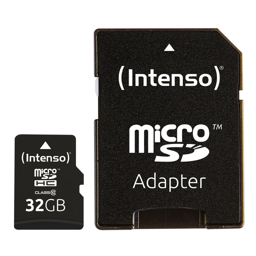 Intenso 32GB MicroSDHC. Capacità: 32 GB, Tipo flash card: MicroSDHC, Classe di memoria flash: Classe 10, Velocità di lettura: 25 MB/s. Funzioni di protezione: Resistente agli urti, A prova di temperatura, Resistente all’acqua, A prova di raggi X, Colore del prodotto: Nero