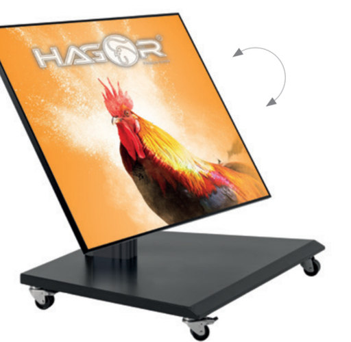 The BrackIT Stand low tilt is a mobile display cart for screens with 32 – 55“ | 81 – 140 cm screen diagonal.