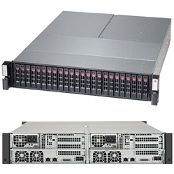 Key Features Twohot-pluggablesystems (nodes) in a 2U form factor. Each node supports the following: 1. Dual socket R3 (LGA 2011) supports Intel Xeon processor E5-2600 v4/ v3 family; QPI up to 9.6GT/s 2. Up to1TBECC 3DS LRDIMM , up to DDR4-2400MHz ; 8x DIMM slots 3. 3 PCI-E 3.0 x8 low-profile slots per controller 4. Dual 10GBase-T LAN w/ Intel X540 per node, 1Gb private ethernet between controller nodes 5. Dedicated node to node connectivity featuring high performance PCI-E 3.0 x8 and IPMI for robust node fail- over support 6. 24x shared 2.5" hot-swap SAS drive bay with SES2 7. SAS3 via LSI 3008 controller 8. Server remote management: IPMI 2.0 / KVM over LAN / Media over LAN 9. 8x 4cm PWM counter rotating cooling fans 10. 1200W Redundant Power Supplies Titanium Level (96%)