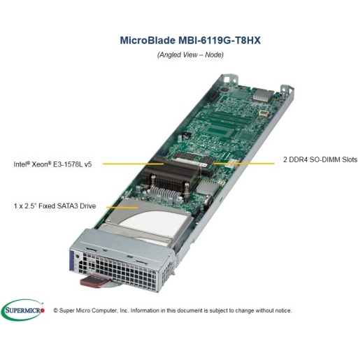 Coming Soon Key Features Up to 196 Skylake UP nodes per 42U Rack 28/14 Skylake-H UP nodes in 6U/3U Each Node Supports: 1. Intel Xeon processor E3-1585 v5 Socket FCBGA 1440 2. Up to 32GB DDR4-2133MHz ECC SO-DIMM in 2 DIMM slots per node 3. 1x 2.5" SATA3 SSD, 1x SATADOM, 2x M.2 (PCI-E 3.0 x4) 4. Dual 10GbE LAN ports 5. Dedicated LAN supports IPMI 2.0 6. 28/14 Skylake UP nodes in 6U/3U 7. Power Supply Module with Fan: 8/4/2x 2000W Redundant Titanium Level, 8/4x 1600W Redundant Platinum Level, 8/4x 2000W Redundant -48V input DC power supplies (N+1, N+N) 8. Front-loading nodes for easy access and servicing