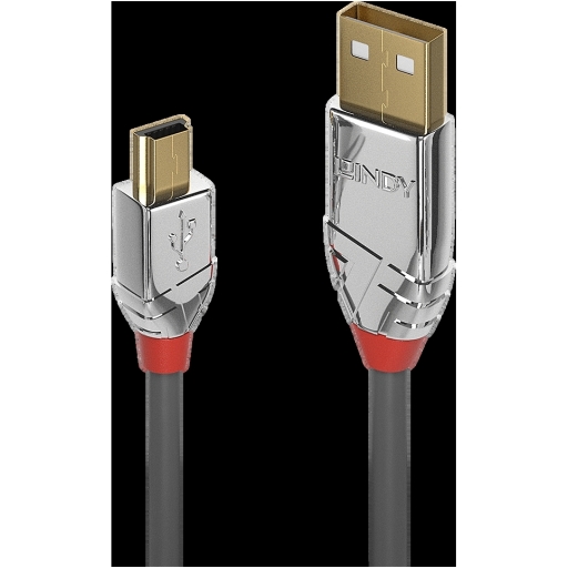 Cavo USB 2.0 Tipo A a Mini-B di alta qualit+ e design ricercato Supporta velocit+ di trasferimento dati fino a 480Mbps Connettori e contatti placcati oro 24K, guscio in ABS cromato Cavo con doppia schermatura, resistente alla corrosione, conduttori in rame stagnato ad alte prestazioni USB 2.0, 480Mbps; 10 anni di garanzia Dal concetto di connettivit+ delle nuove linee sviluppate da Lindy nascono i cavi USB 2.0 Tipo A a Mini-B Cromo, caratterizzati da connettori cromati e contatti placcati oro per un mix di prestazioni e design di alto livello. I cavi USB 2.0 Cromo Line sono realizzati con conduttori in rame stagnato per performance ottimali e resistenza alla corrosione. Contatti e connettori sono placcati oro 24K per mantenere la massima integrit+ del segnale e affidabilit+. Supportano velocit+ di trasferimento dati fino a 480Mbps per il trasferimento rapido e semplice di grandi volumi di dati. Disponibili in diverse metrature: 0.5m, 1m, 2m, 3m, 5m e 7.5m.