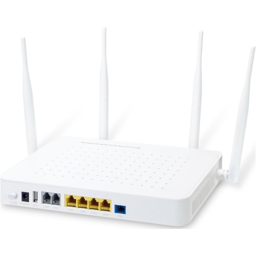 GPON HGU with 4-Port GbE, 1200Mbps 802.11AC Wireless and 2-Port FXS (1 x USB)